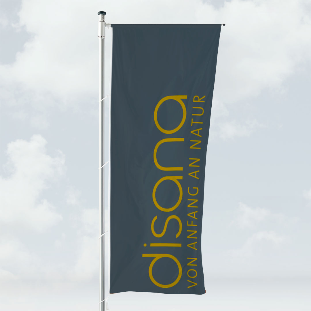 • Gebrauchsfertig als Auslegerfahne konfektioniert