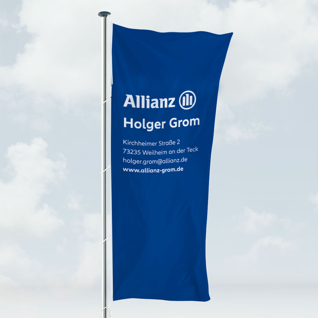Wir empfehlen deshalb, Ihre Digitaldruckfahne bei stürmischem Wetter rechtzeitig einzuholen.