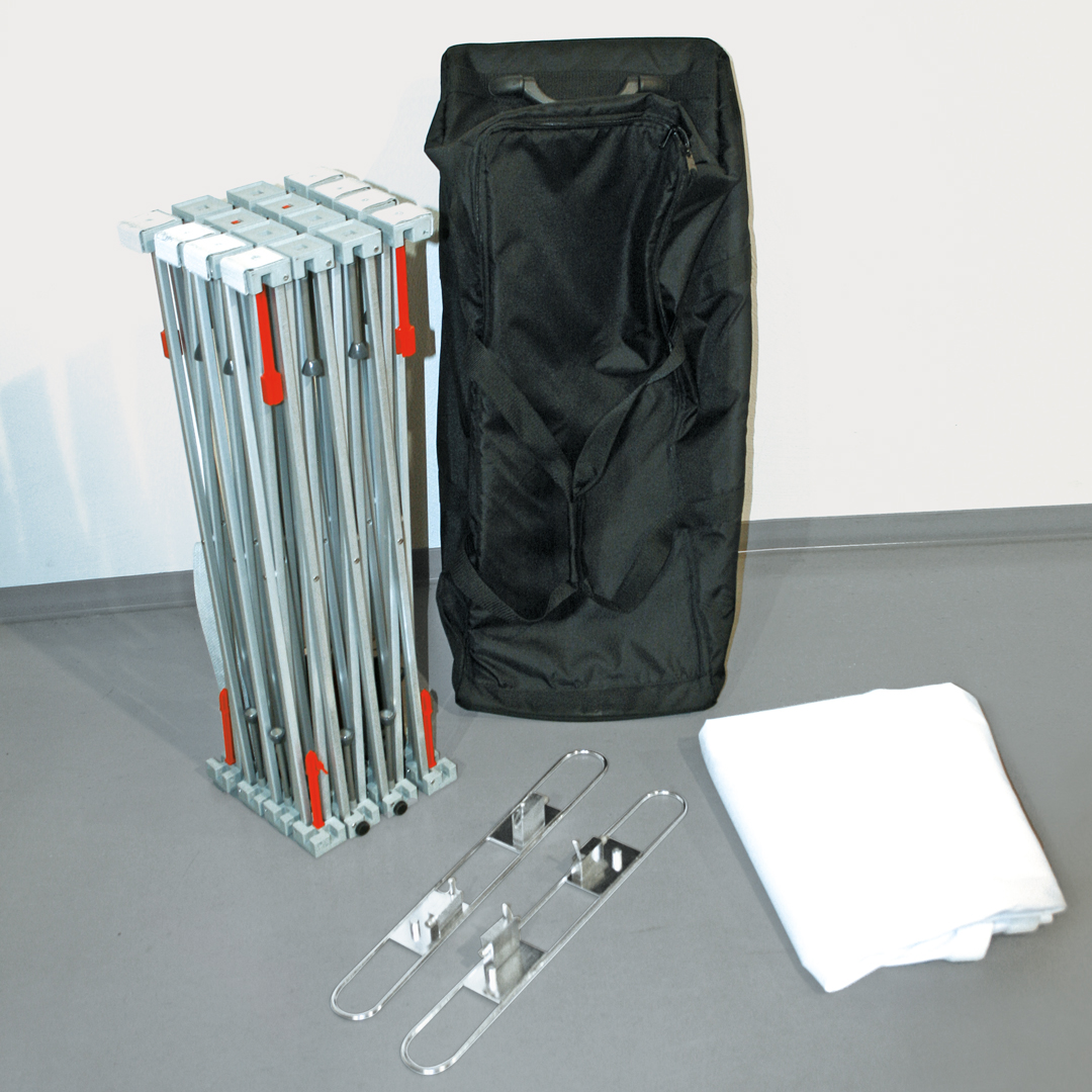 Wählen Sie abhängig von Ihren Anforderung und den örtlichen Gegebenheiten aus drei Größen. In Kombination mit unseren mobilen Theken und RollUps können Sie einen kompletten Promostand zusammenstellen. Der DOMO Magnetic besteht aus einem Scherengittersystem, das auch von einer Person im Handumdrehen aufgebaut werden kann. Für den Transport lässt sich das komplette System wieder ganz einfach in der mitgelieferten Tasche verstauen.