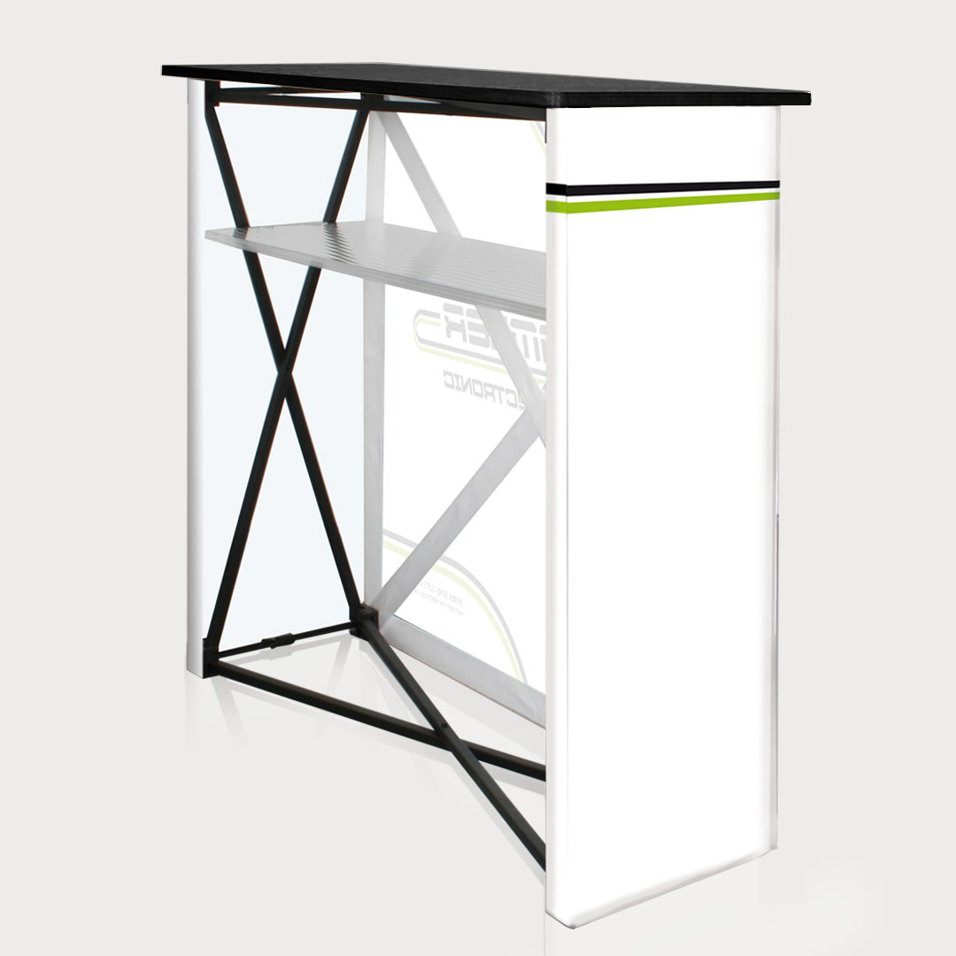 Unsere Pop Up Theke ist die perfekte Ergänzung für einen flexibel einsetzbaren, mobilen Werbeauftritt bei Messen, Events und am POS. In Kombination mit RollUps und unserer mobilen DOMO Messewand rundet die Theke Ihren Promostand ab.
