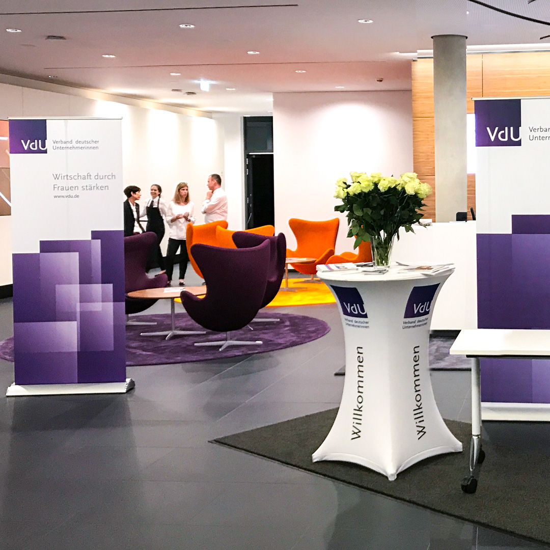 Stehtischhussen sind die ideale Lösung um Stehtische auf Messen und Veranstaltungen als Empfangsmöglichkeiten mit Ihrer Werbung oder Logo zu branden. Ebenso können Sie ihre Stehtische so vor Witterung und Schmutz schützen.