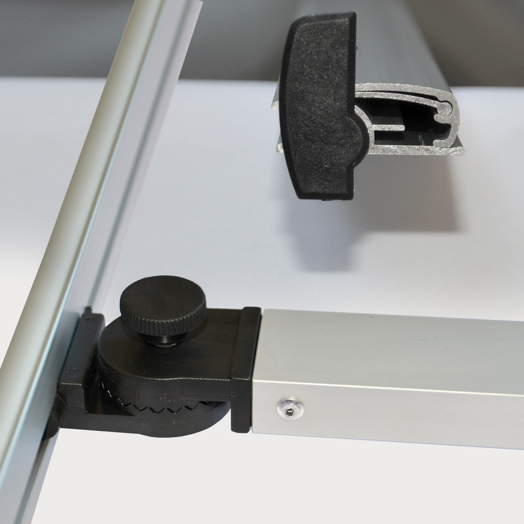Das L-Banner Economy ist ein extrem leichtes Bannerdisplay, bei dem der Werbebanner, bedruckt mit ihrem Wunschmotiv, von zwei Aluklemmleisten gehalten wird. Aufgestellt wird er einfach durch das Ausklappen des L-Banner Fußes und das Einfügen der von den Roll Up Bannern bekannten Alu-Klappstange. Der L-Banner Economy ist ideal geeignet als Kundenstopper. Als Werbedisplay in Shops oder in der Gastronomie. Das bedruckte Werbebanner wird zusammen mit dem L-Banner-System auf einem stabilen Pappkern gerollt und ready to use inklusive Transporttasche geliefert und ist somit ideal beim Transport geschützt.