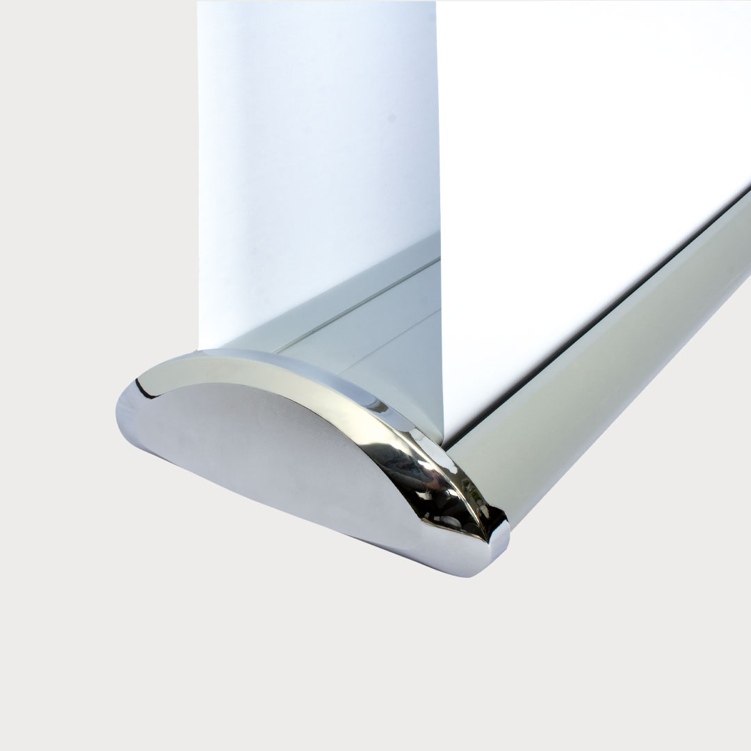 Rollups bestehen aus einer Aluminiumkassette in der eine Bespannung aufgerollt ist. Diese wird beim Aufstellen herausgezogen und mit einer Aluminiumstange fixiert.
